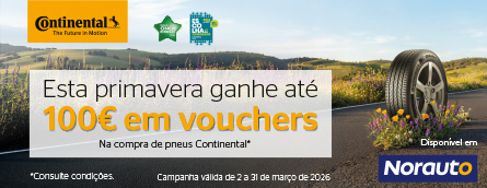Equipe o seu carro com a máxima segurança e poupança! Na compra de pneus Continental, ganhe até 100€ em vouchers para utilizar na Norauto.